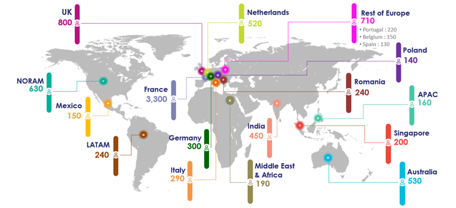 En 2026, Thales prevé contratar cerca de 3.300 personas en Francia, 800 en el Reino Unido, 630 en Norteamérica, 390 en América Latina, 530 en Australia, 520 en los Países Bajos, 450 en India, 300 en Alemania, 240 en Rumanía, 200 en Singapur y 140 en Polonia.